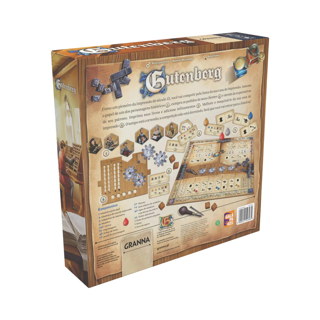 Com uma experiência de seis rodadas intensas, o jogador que acumular mais pontos ao final será coroado vencedor. Embarque nesta jornada única, onde estratégia e astúcia moldam o caminho para a vitória em Gutenberg!